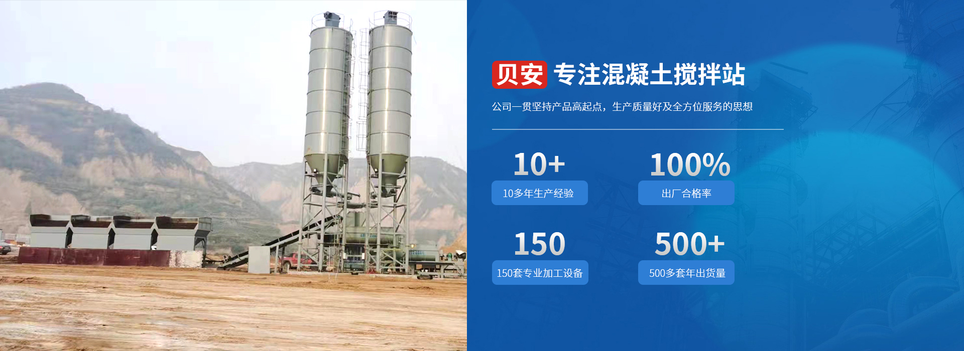 山東貝安重工有限公司是一家新型的民營企業,專業從事穩定土拌合站、混凝土攪拌站、水穩拌和站等穩定土攪拌設備的設計、生產、安裝調試及維護。自成立以來,企業不斷發展和壯大。公司一貫堅持產品高起點,生產質量好及全方位服務的思想,使企業再建筑行業中有著一定聲譽。 公司主要生產制造穩定土拌和站,穩定土拌合站,穩定土場拌設備,混凝土攪拌站,水穩拌合站,二灰拌合站,級配碎石拌和站等主導產品,并形成規?;a,靈活的生產方式和全方位的售后服務贏得了廣大用戶的一致好評,產品行銷各地。公司的售后服務人員業務熟練,承諾對產品實行終生服務,想用戶所想,急用戶所急,較大限度的滿足用戶要求。 公司的售后服務人員業務熟練,技術精湛,承諾對產品實行終生服務,想用戶所想,急用戶所急,較大限度的滿足用戶要求。始終堅持"質量號,用戶至上"的方針受到用戶的廣泛好評。 "團結拼搏,開拓創新,科技興廠"是公司的企業精神,體現了山東貝安重工有限公司全體員工不斷自我完善的進去精神。 山東貝安重工有限公司攜全體員工恭候您的光臨指導 。